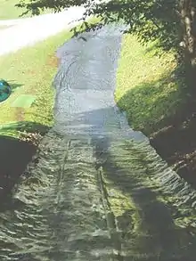 The wet banana is a traditional Bandytown event that has been going on for years. The wet banana is a large water slide created by taking mining tarp and plastic and placing it on a large hill. Then, using water pumped from the creek mixed with some soap, people grab a tube and slide down.