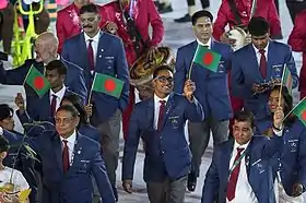 The Bangladesh Olympic Association selected a team of seven athletes, four men and three women, for the Games, competing in five different sports (archery, athletics, golf, shooting, and swimming). Six of them made their Olympic debut, with freestyle swimmer Mahfizur Rahman Sagor returning for his second Olympic appearance from London 2012. Majority of the roster received their spots by wild card entries or Tripartite invitations, without having qualified. Meanwhile, golfer Siddikur Rahman, the only qualified sportsman of the team, was selected to carry the Bangladeshi flag in the opening ceremony.[1] Bangladesh, however, has yet to win an Olympic medal.