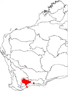 It occurs in sand over laterite or in gravelly loam, amongst heath or sometimes mallee woodlands and shrublands. It occurs only within the Esperance Plains and Mallee biogeographic region,[6] between Kulin, Lake Magenta, Frank Hann National Park and Hyden.[1][2]