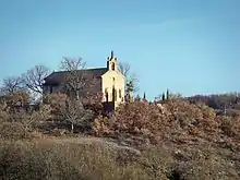 The term grange (barn) in this area refers to an isolated farm: this toponym is present in La Grange (at the northern border of the commune), also at La Grange (outside the village), and in Les Granges de Dauban.[18] The hill overlooking the village is called Le Défens: this is an area, owned by the lord or the community, where herds were banned.[18] Le Clos de Gardon is a cultivable area where the material from road ballasting was used to enclose the fields and meadows with a dry stone wall.[18] Les Chastellas was a fortification at high altitude[18] (which has been confirmed by excavations, see below) and La Tuilerie was a tile production workshop prior to the 18th century (before the term tuilière was used).[18]