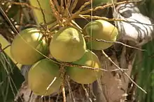 | Plant | Area (ha) | Yield | ![]() Coconuts on the palm |