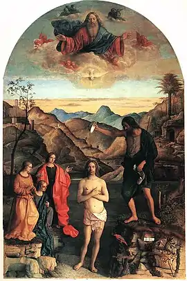 Baptism of Christ is a tempera painting on panel by Giovanni Bellini, dating to 1500–1502, and now located in the Chiesa di Santa Corona in Vicenza. It is signed IOANNES / BELLINVS on a rock in the lower left.[1]