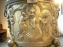 ![]() The bronze baptismal font in the Hildesheim Cathedral | |