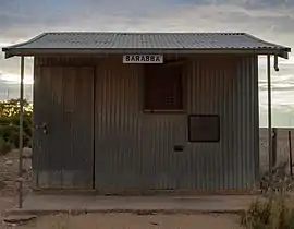 The name Barabba is derived from an Aboriginal word for an indigenous bulrush plant.[2] The town of Aliceburgh ceased to exist in 1897 and was resurveyed into larger workingmen's blocks. A Primitive Methodist Church opened in 1877.[5] The Barabba post office operated from 1877 until 1971. It operated from the school building until 1926. The school itself closed in 1960 and the building was destroyed by the 2015 Pinery bushfire. The final service in the church was held in 1967 and it has since been demolished.[6]