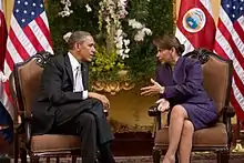 | 10 | Copenhagen | December 17–19 | Attended the United Nations Climate Change Conference. Also met with Chinese Premier Wen Jiabao,[55] and with Russian President Dmitry Medvedev to discuss completing a nuclear disarmament treaty to replace the 1994 START I Treaty.[56] | ![]() |
