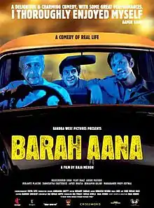 Barah Aana is a 2009 Indian black-comedy drama film written and directed by Raja Menon. The title refers to Barah (12) in Hindustani aanas (or annas), 3/4 Rupees (75 paise), which was a unit of Indian currency before decimalisation. Barah Aana stars Naseeruddin Shah, Vijay Raaz, Arjun Mathur, and Tannishtha Chatterjee. The film depicts the lives of working-class Indians in a globalized milieu and how events spiral out of control when the characters try their hands at crime.[2]