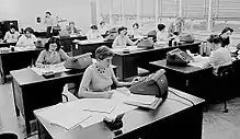 Barbara Canright (Born St. John, 1919 – 1997) was an American human computer at NASA's Jet Propulsion Laboratory (JPL) who was the first female mathematician to be employed.[1] Canright joined the team in 1939 as a human computer, which required "Teams of people who were frequently used to undertake long and often tedious calculations; the work was divided so that this could be done in parallel." During her time at the JPL program she was instrumental in calculating both the thrust-to-weight ratio for performance of engines under various conditions, and the potential of rocket propellant (which would be used by the U.S. Navy).[2] Canright was critical in the development of the JPL program and laid the foundations for other women to work in a field which was previously closed off to them.[3]