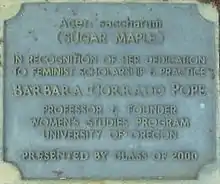 The annual Barbara Corrado Pope Award was established at the Clark Honors College for an honors thesis "in the area of diversity, including gender and ethnic studies".[9]