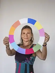 Since her early childhood colour has played a major role for Barbara Diethelm and she developed a sensitivity for colour and an appreciation for the use of paint.[1] After finishing college in Zurich, she moved to the United States in 1982. She studied graphic design from 1983 to 1985 and fine arts until 1988 at San Antonio College under the instruction of Mel Casas, Mark Pritchett and Tom Willome.[2] At the same time, she studied Humanities and Business at the St. Mary's University in San Antonio. She continued studying painting and printmaking from 1988 to 1990 at the San Francisco Art Institute under the instruction of Sam Tchakalian and Ivan Majdrakoff. During that time, she devoted herself to Far Eastern philosophy and yoga, which has reflected in her artistic work from then on.[3] In 1992, she visited the artist Agnes Martin for a longer period in Galisteo, New Mexico, which made a longlasting impression.