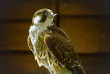 The Barbary falcon also bears some resemblance to the lanner falcon, but can be distinguished from that species at rest by its size and in the head-pattern, flight, flight action and underwing pattern.[2]