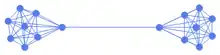 In the mathematical discipline of graph theory, the n-barbell graph is a special type of undirected graph consisting of two non-overlapping n-vertex cliques together with a single edge that has an endpoint in each clique.[1]