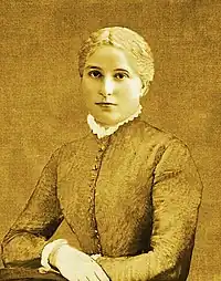 There is almost no verifiable information about Barbora's short life, which is shrouded by various hagiographical narratives.[1] She was the only child born into a noble family of Umiastowskis.[2] Her mother died early and she had a strict stepmother. Local people tell stories about her care for the sick and generosity for the beggars.[2] She would intercede on behalf of serfs and walk to the church on her knees.[1] It is said that her exceptional piousness and devotion to God displeased and angered her father. She wanted to become a nun, and even joined a Franciscan monastery in Riga, but her non-believer father would not allow it.[3] Narratives tell that she jumped out of the second floor of the manor to escape her father's wrath, and died of injuries.[1][4] In a document from 1876, vice-governor Vasily Ryzhkov of Kovno Governorate first recorded the claim that Barbora died escaping her father's lust and thus remained a virgin.[5]