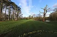 In 1403 there was a house on the land called High Wyches which by 1677 had been renamed to High Grounds. In 1871 the house and estate was bought by Robert Buchanan Barclay and it was renamed to High Leigh.[2] In 1935 the Barclay family gifted part of the grounds of the house to the public for the silver jubilee celebrations of King George V. The park includes a lake and bridge which was laid out in the 1870s by James Pulham and Son an international firm of landscape designers in this era.[3] The park was officially opened on 12 May 1937.[2] After Robert Barclay's death in 1921 the property passed to his son, Robert Leatham Barclay, and he sold the house and forty acres to a company of which he was a director, First Conference Estate Ltd, which provided conference facilities for churches and Christian groups and also ran The Hayes conference centre in Derbyshire. That company morphed into a charity (The Christian Conference Trust) in 1996 and continues to provide meeting facilities for a wide range of users, including churches, other charities, local businesses and public bodies from around the country. High Leigh Conference Centre celebrates its centenary in 2022.[4]