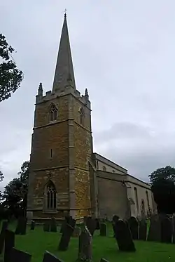The Church of St Peter and St Paul is a listed building Grade II* dating mainly from the 14th century with 15th-century additions. Most of the windows are in the Perpendicular style of Gothic. Parts of the church were rebuilt in 1840 and the whole was restored in 1857.[6] The congregation belongs to the Vale of Belvoir group.[7]