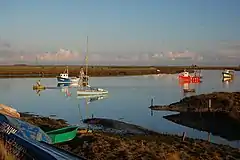 Boats moored in the creek near Barling Hall