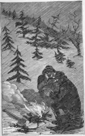 The clearing party made it to the top of a ridge, now known as Barlow Pass, where they were effectively lost. Barlow, Palmer, and a man named Harrison Porter Locke hiked the south face of Mount Hood west of Palmer Glacier to scout a westward route off the mountain. Palmer, in better physical condition than his companions, climbed high on the glacier (likely Zigzag Glacier), and took detailed notes on the surrounding ridges and rivers. They returned to the group, arranged for guards for their wagons at a place they named Fort Deposit.[5] Several families in wagons ill-suited for travel through the wilderness remained at Fort Deposit, while the remainder returned to The Dalles. Barlow's group followed the Sandy River west on foot. Palmer noted an intersection with a trail coming from The Dalles by way of Lolo Pass, around the north side of Mount Hood, which had previously been the only overland trail traversed by pioneers.[6] Near the present-day city of Sandy, they turned southwest to reach Eagle Creek and Philip Foster's farm near present-day Clackamas.[2]