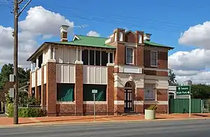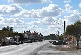 Barmedman is a rural village in the Bland Shire in the New South Wales state of Australia, located approximately half-way between West Wyalong and Temora. Barmedman began as a service centre for gold-mining operations in the area. Nowadays the local district has an agricultural economic base, including wheat and canola cropping and sheep grazing. It is the home of two large wheat silos with a combined capacity of over a million bushels. At the 2011 census, Barmedman had a population of 212.[1] The township's name is derived from an Aboriginal word meaning 'long water'.[2]