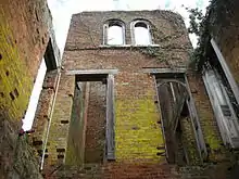 Barnsley's descendants continued to live at Woodlands until the roof of the main house was blown off by a tornado in 1906. Barnsley's granddaughter, Adelaide Saylor, and her family who were living there at the time, moved into the kitchen wing and the main house was never restored,[3] and eventually fell to ruins. In 1988 Prince Hubertus Fugger purchased the estate and began a major project to stabilize the ruins and rescue and restore the gardens. The original boxwood hedges planted in the early 1840s still survived and had grown up into a thicket of small trees and vines. These were carefully cut back over a number of years to reveal the interweaving paths and flower beds of the original parterre garden. This is now one of the few surviving antebellum gardens of the southern United States.[2]