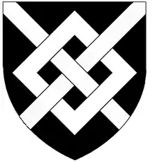 Arms of Harington: Sable, a fret argent; Crest: A lion's head erased or collared gules [1]