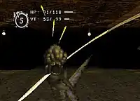The game was later ported to the PlayStation, releasing on October 28, 1999 with the subtitle Distorted Delusions.[4] Several changes were made to the port including adjustments to floor generation, a new vendor in the town, and decreased difficulty.[36][42] There was also an opening narration during one of the demo movies provided by actress Minami Takayama. She was brought in due to her role in Summer Vacation 1999.[42][4] A new vocal theme, "Black in truth", was composed for the PlayStation release, and released by Meldac Records as both a single and part of a mini album titled Read my Lips.[61] The theme was composed by Iwata at the company's insistence, though Yonemitsu disliked it and felt a vocal theme did not fit the game's tone. Iwata got together a small vocal group he dubbed Baroque Mode to perform the new theme, but had it playing in the game's new demo sequence as he disliked replacing his original opening track.[35] A budget edition of the port was released on March 8, 2000.[47] A port of the original version for the Nintendo Switch was released on November 12, 2020 in Japan. The port includes the contents of Baroque Report, screen resolution options, and added openings from the PlayStation port and the remake.[58]