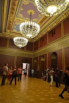 The Baroque Palace (Romanian: Palatul Baroc) is a monumental palace in the historic centre of the Romanian city of Timișoara. One of the representative buildings of 18th-century Timișoara, the Baroque Palace today houses the city's National Museum of Art (Romanian: Muzeul Național de Artă). The richly decorated palace consists of two floors and a mansard, as well as two entrance gates designed in the Viennese Baroque style. The Baroque Hall on the first floor hosted festivities occasioned by the visit of emperors (Joseph II, Franz Joseph I, etc.), kings (Ferdinand I, etc.) and prelates, as well as important cultural figures (such as musicians Franz Liszt, Johannes Brahms, Pablo Sarasate, George Enescu, etc.).[1]