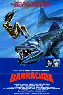Barracuda is a 1977 American horror/thriller film about a small Florida coastal town that is menaced by chemically induced and highly aggressive barracuda fish. The cast included Wayne Crawford, Jason Evers, Roberta Leighton, Cliff Emmich, William Kerwin and Bert Freed. It was directed by Harry Kerwin, with the underwater sequences handled by Wayne Crawford.