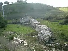 The wall is about 70 meters long, and between 2.6 and 2.7 meters thick. From the typological point of view, it is a wall of straight, rectangular section, consisting of homogeneous stone blocks mortared in opus caementicium. It is situated in an open valley, which is relatively open, develops in the direction of the river Ribeira de Bensafrim. It is built where the valley begins to narrow, about 1.3 km west of Ribeira de Bensafrim. Barragem Romana da Fonte Coberta may have served to irrigate cultivated fields, or as part of a water supply system for the town of Lacobriga, which was situated on Monte Molião, on the east bank of Ribeira of Bensafrim. In the areas that preserve the face of this structure it is possible to identify some negatives of what appear to be horizontally arranged boards, which would probably form part of the frame work system assembled for its construction.