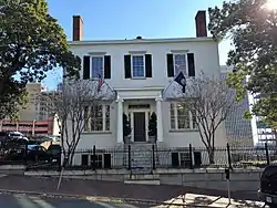 William Barret (29 November 1786 – 20 January 1871), a wealthy tobacconist in antebellum Richmond, built the Classical Revival styled house, in 1844, in Richmond's up-and-coming Gamble's Hill neighborhood. The house is situated on the southeast corner lot of 5th and Cary Streets. The residence and its dependencies survived the Richmond evacuation fire (April 2–3, 1865) at the end of the American Civil War, and remain largely intact, today.
