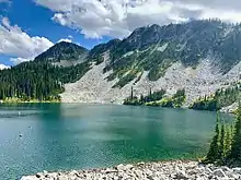 Barrett Lake is a lake in the Selkirk Mountains in the West Kootenay region of the Regional District of Central Kootenay in British Columbia, Canada. The lake is the source of Barrett Creek, a tributary of the Salmo River.[1] The lake is surrounded by a series of mountain peaks including Dominion Mountain, Empire Peak, Commonwealth Mountain and others. There is an emergency cabin maintained by Recreation Sites and Trails BC.[2]