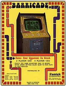 Barricade is a clone of Blockade released by RamTeK in 1976. It is a two-player game of what would later be labelled snake.