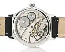 The Modern Classic watch uses a refurbished mechanical movement made by Swiss manufacturer ETA, for Bulova pocket watches of the 1940s and 50s.[2] The idea to convert a pocket watch to a wristwatch is not new. As far back as the 19th century soldiers requiring precision watches during battle made the first conversions in order to free up their hands.[3] These early conversions eventually came to be known as "trench watches" because of their extensive use among soldiers in the trenches during World War I. Today few companies do such conversions because of the cost and effort required.