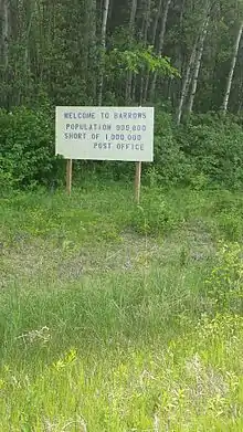 Welcome sign travelling into Barrows, Manitoba.
