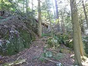 More than 5 miles (8.0 km) of moderately difficult hiking trails are located on the preserve, including The Ledges Trail a self-guided interpretive walk that runs over and around the Cobbles. The visitor's center and museum include displays of natural and human history, photography, art, and taxidermic displays of local animals, birds, and bird eggs. The Trustees of Reservations offers guided natural history tours led by naturalists with proceeds supporting conservation work at Bartholomew's Cobble including wildlife research, invasive species control, protecting endangered species, and restoring native habitats.[3]
