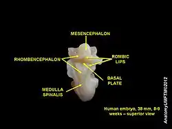 Initially, the left and right sides of the basal plate are continuous, but during neurulation they become separated by the floor plate, and this process is directed by the notochord. Differentiation of neurons in the basal plate is under the influence of the protein Sonic hedgehog released by ventralizing structures, such as the notochord and floor plate.[1]