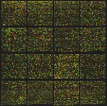 In bioinformatics, microarrays are used to measure how strongly different genes are expressed in a sample of biological material. Different rates of expression of a gene are often compared by using the binary logarithm of the ratio of expression rates: the log ratio of two expression rates is defined as the binary logarithm of the ratio of the two rates. Binary logarithms allow for a convenient comparison of expression rates: a doubled expression rate can be described by a log ratio of 1, a halved expression rate can be described by a log ratio of −1, and an unchanged expression rate can be described by a log ratio of zero, for instance.[44]