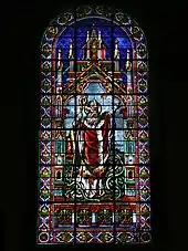 The Basilica-Cathedral contains twenty-eight stained glass windows which adorn the upper walls (clerestory) and are of English and French workmanship. The windows were the gifts of patrons and religious societies, such as the Society of the Holy Rosary and were installed between 1859 and 1905. The 35 stained glass windows in the ambulatory all date from 1954–55 and were the work of Gerard Earley and Company of Dublin; they constitute the largest collection of mid-20th Century Irish Arts and Crafts style stained glass windows in one building in the western hemisphere.