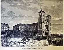 Construction took place under the watchful eye of the Irish-born Bishop Michael Anthony Fleming, the Vicar-Apostolic and first Bishop of Newfoundland and later under the eye of his successor, Bishop John Thomas Mullock. The Basilica-Cathedral of St. John the Baptist is unusual among North America's 19th century public buildings in that it was constructed using limestone and granite imported from Galway and Dublin, Ireland, as well as 400,000 bricks from Hamburg, as well as local sandstone and Newfoundland bluestone quarried from St. John's and Kelly's Island in Conception Bay, giving the Cathedral its characteristic grey colour. [2]