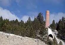 Almost opposite the Hope-Katy complex on the south side of the Boulder River in Basin was the Katy Extension Mine on the north side. It produced ore from part of the Hope-Katy lode that had been displaced about 800 feet (240 m) to the north by faulting.[15] Other mines within 2 miles (3 km) of Basin included the Lotta, 1 mile (1.6 km) west of town along the route of Interstate 15; the Basin Bell (Latsch), about 1.5 miles (2.4 km) north of town along Basin Creek; the Boulder, 1.5 miles (2.4 km) northeast of Basin on the south slope of Pole Mountain; the Mantle and South Mantle, about 1.5 miles (2.4 km) north of town along Cataract Creek; and the Obelisk, 1.5 miles (2.4 km) east of town near the road that later became Interstate 15.[15]