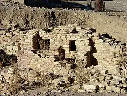 The houses in Basta were built on the familiar circular shape, and this design enabled individuals within the same house to live together. They used limestone to build their homes, as this can be known by the height of the walls in some places and the stone partitions whose floors were made with wood.[5][6] These woods were from trees of the area and imported from other regions.