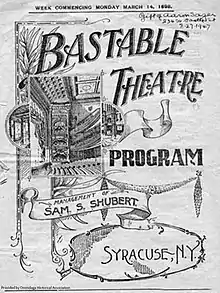 The Bastable Theatre was a theatre in Syracuse, New York, from 1893 to 1923, when it burnt down. First built by Frederick Bastable, Sam S. Shubert began his theatre management at the Bastable in 1897. He and his brothers established The Shubert Organization, which became a major theatre owner. During Shubert's early years of management, he competed with the city's Wieting Opera House, which was controlled by The Theatrical Syndicate. The Bastable itself hosted a number of touring companies in the city and became known for hosting stock companies and melodramas. The State Tower Building was constructed on the site of the theatre after it burnt down.
