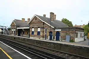 The station is near the hospital, in the ecclesiastical parish of St John's Hill[6] and in the broader town council's civil parish.[7] It is on a south coastbound route from London via Swanley and via Otford. The northbound platform has a bench under a shelter and in 2014 new benches and service tannoy have graced the other platform. The staffed office, after fading, ceased on 30 November 1991. Southeastern has fitted an electronic screen showing departures.