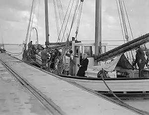 In order to promote tourism to the Houtman Abrolhos, the Western Australia State Government obtained the boat from the Australian Army for purchase by Archdale "Dal" Gaze and Alan Fox.[1][2] Batavia Road made its first sailing from Geraldton on Christmas Day 1946 and until 1948, together with their another boat, Suda Bay, Gaze and Fox transported tourists to and from the Houtman Abrolhos, especially Pelsaert Island.[2][4] This was the first known commercial tourist operation in the Houtman Abrolhos. After the partnership split in 1948, Gaze continued using Batavia Road for tourism, as well as transporting stores and their catch for lobster fishermen based on the islands.[5] On 13 June 1948 a cyclone struck the Houtman Abrolhos and the Batavia Road was blown ashore at Wreck Point, near the Half Moon Reef and was nearly sunk. Tourists assisted the crew in salving the boat and fabricating a replacement rudder and, after help from fishermen, they were able to make the passage back to Geraldton.[6] Repairs were extensive and the boat returned to service in August 1948[7]
