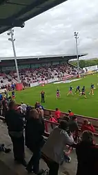 The club play at Mount Pleasant which currently has a capacity of 7,500. It has a seated main stand, a large covered terrace behind one goal where the changing facilities are located, a small covered seated stand running approximately halfway down one touchline, with open terracing behind the other goal and to the side of the main stand.