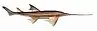 4. The sawfishes are shark-like in form, having tails used for swimming and smaller pectoral fins than most batoids. The pectoral fins are attached above the gills as in all batoids, giving the fishes a broad-headed appearance. They have long, flat snouts with a row of tooth-like projections on either side. The snouts are up to 1.8 metres (6 ft) long, and 30 centimetres (1 ft) wide, and are used for slashing and impaling small fishes and to probe in the mud for embedded animals. Sawfishes can enter freshwater rivers and lakes. Some species reach a total length of 6 metres (20 ft). All species of sawfish are endangered or critically endangered.[15]