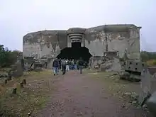 The fort was constructed between 1941 and 1944 by the German navy. Together with four other coastal batteries, it formed a part of the Kristiansand Artillery Group. Together with its sister battery at Hanstholm in Denmark, Møvik Fort was built to obstruct Allied naval forces by blocking the Skagerrak strait and the seaways to Eastern Norway, the Kattegatt Bay, the Baltic Sea and the Baltic region for the allied naval forces.[1] Only a field, ten nautical miles wide, in the Skagerrak could not be covered by the guns of these facilities. This field was therefore mined.[2]