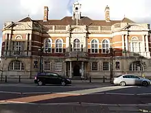 The building, designed in 1891 by E. W. Mountford,[1] opened in 1893 as Battersea Town Hall, the administrative headquarters of the Borough of Battersea, shortly after the borough was transferred from the county of Surrey to the newly formed County of London. It is built from Suffolk red brick and Bath stone,[1] on the site of Jane Senior's Elm House, a villa with a small wooded estate.[2][3]