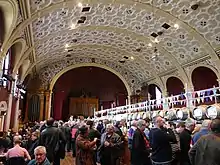 In 1901, a large pipe organ was installed in the Grand Hall by Norman & Beard. This was an unusual instrument designed by Robert Hope-Jones, a pioneering organ builder who invented many aspects of the modern pipe organ. His ideas went on to form the basis of the Wurlitzer theatre organ in the 1920s and 30s. It was said to be the largest Hope-Jones organ to survive, and was partially restored in 2008–2009. In the 2015 fire, although much of the organ was destroyed, including the console, bellows, wiring and architectural cases, the soundboards and much of the pipework survived as they were off site undergoing restoration. A specification of the organ can be found on the National Pipe Organ Register.[5]