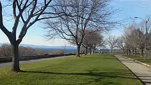 Battery Park is a public park overlooking Lake Champlain at the western end of downtown Burlington, Vermont. The park includes a bandshell, a playground, and various monuments, including a bronze statue of Civil War veteran General William W. Wells, and a red oak sculpture of Chief Gray Lock, a veteran of Gray Lock's War.[1] Locally, it is popular for its wide, sweeping views of Lake Champlain.