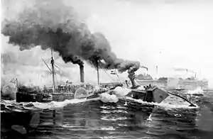 The Battle of Albemarle Sound was an inconclusive naval battle fought in May 1864 along the coast of North Carolina during the American Civil War.[1] Three Confederate warships, including an ironclad, engaged eight Union gunboats. The action ended indecisively due to the sunset.[2]