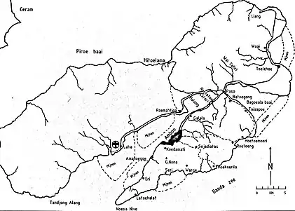 Kapitz's headquarters was at Halong, between Paso and the town of Ambon. It included four armoured cars, an anti-aircraft machine gun detachment and four 40 mm AA guns. In the belief that the terrain on the south coast of Laitimor was too inhospitable for landings and that any attack was likely to be in the east, around the Bay of Baguala, the KNIL forces were concentrated at Paso, near the isthmus, under Major H. H. L. Tieland. There were small KNIL detachments at likely landing places in the north of Hitu.